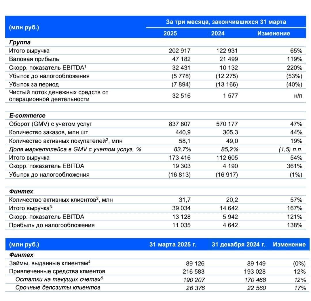 📊 Ozon опубликовал финрезультаты за 1 квартал 2025