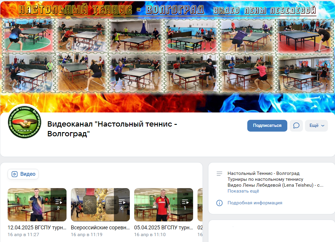 Доброго времени суток, уважаемые любители настольного тенниса! Видео с турниров по настольному теннису будет публиковаться в группе ВКонтакте "Видеоканал "Настольный теннис - Волгоград"" https://vk.com/tabletennisvlg Каналы в Дзене (https://dzen.ru/tabletennisvlg) и в Youtube (https://www.youtube.com/@tabletennisvlg) продолжают свое существование в ожидании лучших времен. Но не обновляются (Ютуб - с сентября 2024 года, Дзен - с середины апреля 2025 года). Это не прихоть или взбалмошность, а всего лишь очередная попытка просуществовать в суровых условиях... Спасибо всем, кто подпишется и поможет в распространении информации о группе. #настольныйтеннисволгоград #видео #теннисныетурниры #lenateisheu