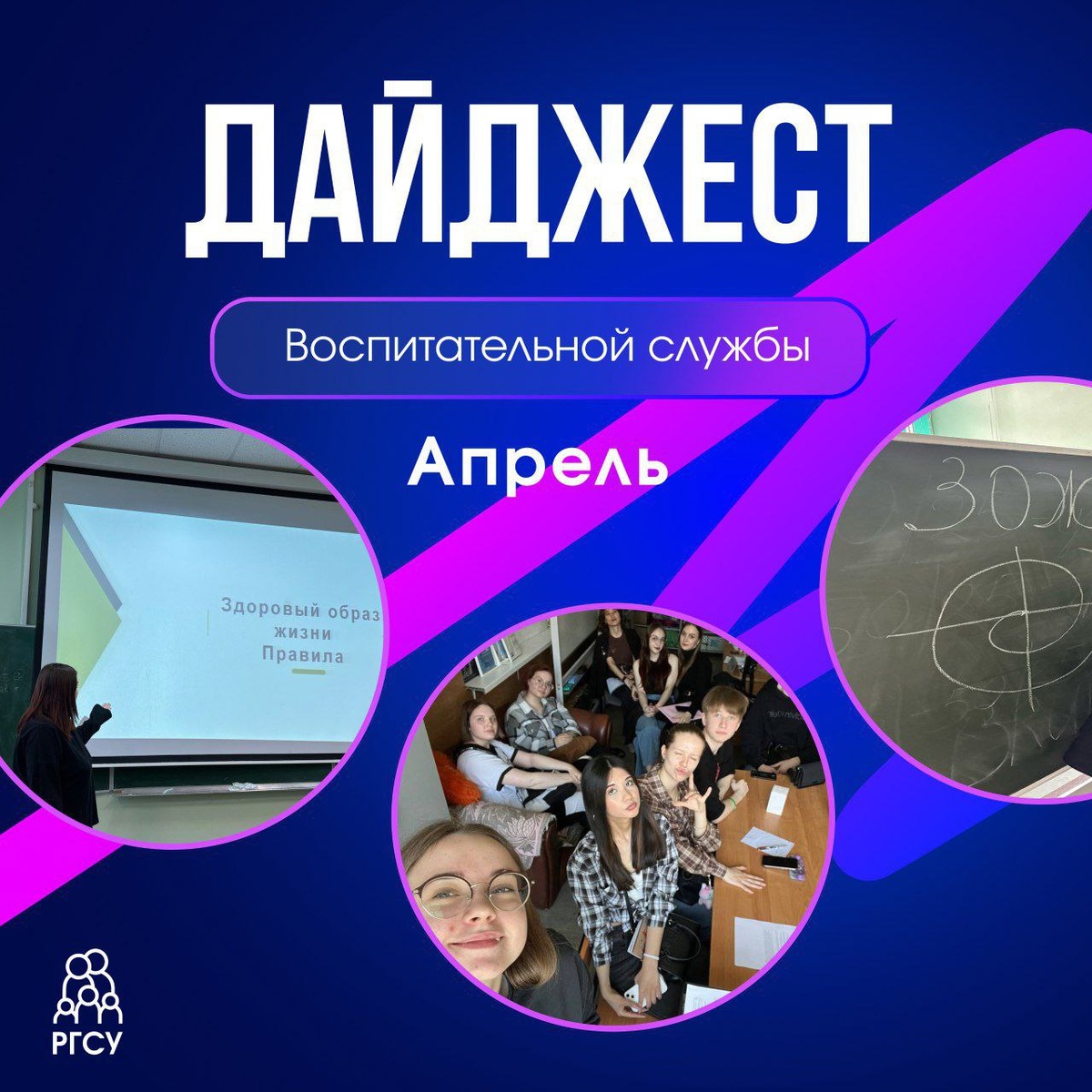 Апрель в Службе воспитания: итоги месяца! Апрель для службы воспитания выдался насыщенным — делимся, что происходило в Колледже РГСУ: 1. Терапевтические группы. Прошли встречи на важные актуальные темы: — «Независимость. Как распознать первые признаки зависимости у себя и близких, сохранить здоровье и жизнь» — «Дружить нельзя забуллить» Говорили о личных границах, доверии, безопасности, дружбе и способах поддержки друг друга. 2. Активность Студенческого совета. — 16 апреля состоялось собрание членов Студенческого совета Колледжа РГСУ: обсуждали планы, идеи и инициативы, которые скоро воплотим вместе. — Также провели онлайн-встречи кураторов и стратостата — держим связь и работаем на результат. 3. Месяц ЗОЖ. В рамках Месяца здорового образа жизни прошли лекции и интерактивы прямо на учебных занятиях: — говорили о здоровье — физическом и психологическом, — обсуждали, как выстраивать полезные привычки и справляться со стрессом. Интерактивы провели представители РДДМ совместно со Студ
