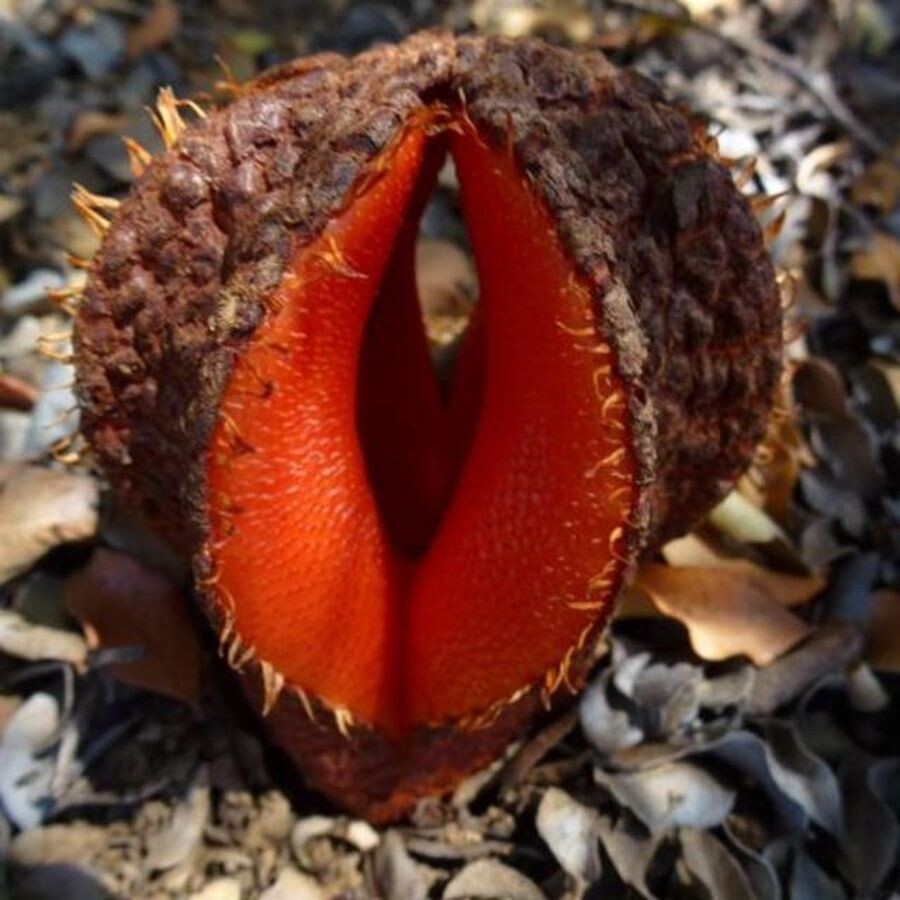 Без листьев, без стебля, без фотосинтеза. Да-да, перед вами не герой фильма ужасов, а настоящее растение. Его зовут Гиднора африканская (Hydnora africana), и оно ненавидит солнце, не умеет жить само и пахнет так, что любой нормальный человек убежит без оглядки. Гиднора — это растение-интроверт. Всё своё тело она прячет под землёй. Там, в темноте, она ворует питательные вещества у других растений, к которым прицепляется своими корнями-паразитами. На поверхность выбирается только ради одного — цветения. И вот тут начинается шоу. Когда гиднора "расцветает", из земли вылезает плотная мясистая шишка, похожая то ли на гриб, то ли на челюсть чудовища. И она воняет. Не просто дурно пахнет — воняет гниющим мясом, фекалиями, разложением. И делает это специально. Зачем? Чтобы привлечь жуков-навозников и падальщиков, которые становятся её "опылителями". Насекомые залетают внутрь, шастают по пыльце, а потом уносят её на следующий "ароматный"
