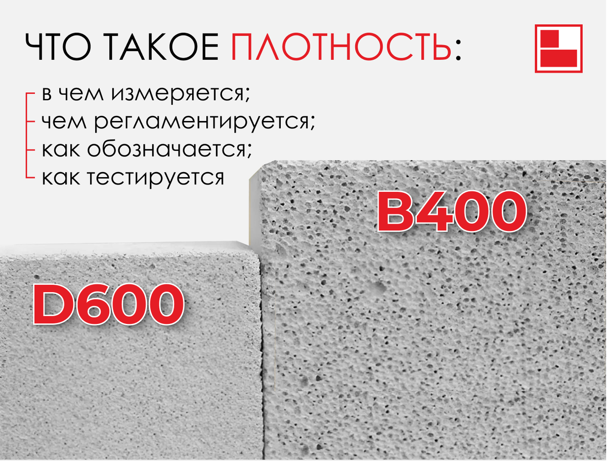 Плотность считается одним из главных параметров, влияющих на эксплуатационные характеристики строительной продукции. В данной статье мы рассмотрим, что такое плотность газобетона, как она обозначается и определяется, а также приведем соответствующие марки (D400, D500, D600) и классы. Газобетон всё чаще выбирают за его универсальные свойства. Плотность (или иначе объёмный вес) обычно выражается в килограммах на кубический метр, и эта величина непосредственно связана с показателем «марка» (например,D400, D500, D600), который указывает на среднюю массу кубического метра в высушенном состоянии. Речь пойдёт и о нюансах использования клея для кладки и о последующей штукатурке, которая тоже может влиять на эксплуатационные свойства газобетонных конструкций. Что такое плотность газобетона, в чём измеряется, чем регламентируется, как обозначается и тестируется? Плотность газобетона — это количественный показатель, демонстрирующий, сколько килограммов этого блока вмещается в одном кубическом мет