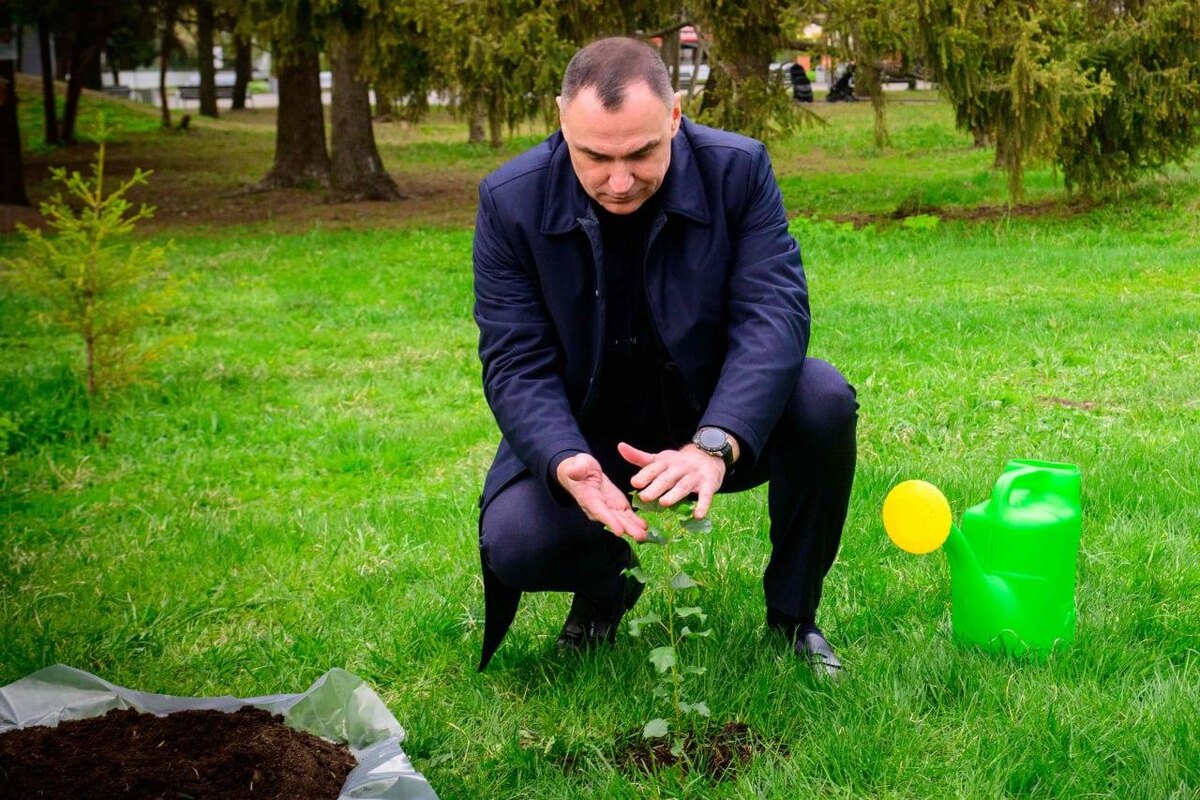 Глава Марий Эл Юрий Зайцев в Центральном парке Йошкар-Олы высадил Тополь Победы