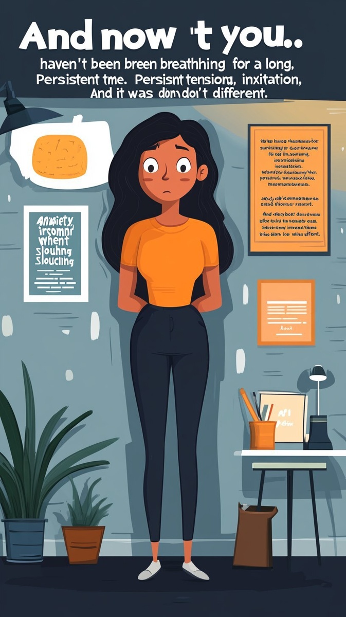 Создано на основе запроса: Flat vector image. Cartoon style. Depicts a problem that needs to be solved now. Topic: "And now about you. You haven't been breathing for a long time. You're surviving. Persistent tension, anxiety, insomnia, irritation, slouching And you don't remember when it was different." Show how an adult woman is anxious and tired. --- Автоперевод: Плоский векторный образ. Как тебе эта картинка? 🤔 https://dzen.ru/id/65c0c65c86e4f837c27b24d7 #ИИ #AI #нейросеть #midjourney #art