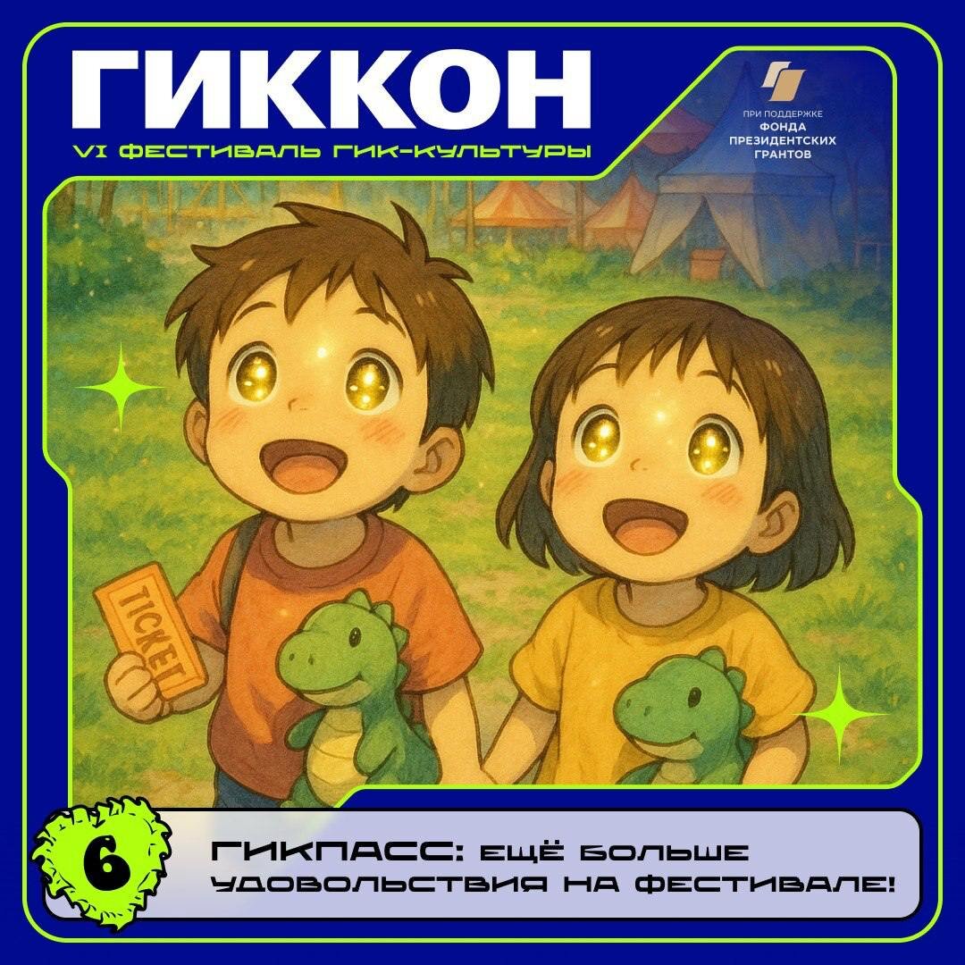🎟️ ГИКпасс: возможность прожить ГикКон с новыми впечатлениями Ребята, в этом году мы впервые запускаем ГИКпасс — специальный билет для тех, кто хочет получить от фестиваля максимум впечатлений! Что уже включает ГИКпасс: ✨ Памятный именной бейдж — красивый и важный артефакт, который останется с вами на память о первом в истории ГИКпассе; ✨ Автоматическое участие в одной автограф-сессии с хедлайнером фестиваля. Вам не нужно бояться барабанов; И это только базовый набор опций! Ближе к фестивалю мы будем постепенно раскрывать всё, что ещё будет доступно по ГИКпассу ❗Важно: с каждым новым большим анонсом его цена будет повышаться Прямо сейчас мы открываем продажу Early Bird — это самая выгодная возможность оформить ГИКпасс. Дешевле уже не будет. Количество ограничено! 📌 Получить ГИКпасс можно по ссылке ❤️ И мы напоминаем, что ГикКон остаётся бесплатным для всех гостей любого возраста и увлечений, мы с радостью и трепетом в сердце ждём каждого из вас! ГИКпасс — это ваш способ подд