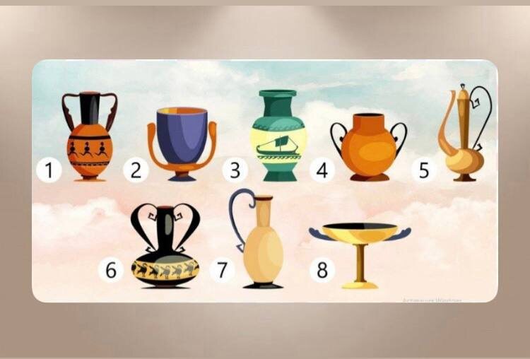 Доброе утро! 💛💛💛 ✅ Предлагаю пройти психологический тест по картинкам: «Что мешает вам в достижении целей?» ✅ Тест поможет определить, что останавливает вас на пути к успеху. ✅ Инструкция: Посмотрите на картинку и выберите кувшин, который больше всего понравился. ✅ Напишите свой ответ в комментариях. ✅ Расшифровка теста будет в 18:00.