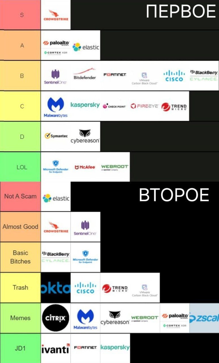 💣 Ваш EDR — не проблема для хакеров? В сеть утекла градация качества систем защиты EDR по мнению опасной группировки, специализировавшейся на ransomware-as-a-service (RaaS) и второй, фокусирующейся на использовании утилиты Terminator, используемой создателями BlackByte, LockBit, ALPHV/BlackCat. И что же они пишут: 💀 Microsoft Defender, McAfee, Webroot — просто вызывают смех у группировки. 🧱 CrowdStrike — единственные, кого они реально боятся. При этом Terminator способен уничтожить процессы многих известных EDR-решений, включая CrowdStrike, SentinelOne 📸 Вот как они ранжируют EDR по трудности обхода: → Скрин 1 → Скрин 2 (Я привел эти обе таблицы здесь на картинке) Можно ли доверять этому? Пройдемся по фактам: 🔎 CISA, март 2024: Как 12 банд обходят EDR: используют BYOVD (Bring Your Own Vulnerable Driver) — подсовывают уязвимые драйверы и убивают EDR, как котят. 🧪 ESET, март 2025: инструменты типа EDR Killer массово используются в атакующих фреймворках 🪓 Sophos, март 2024: