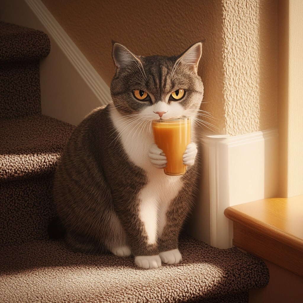 Создано на основе запроса: a cat drinking an orange julius // photorealistic // 4k resolution