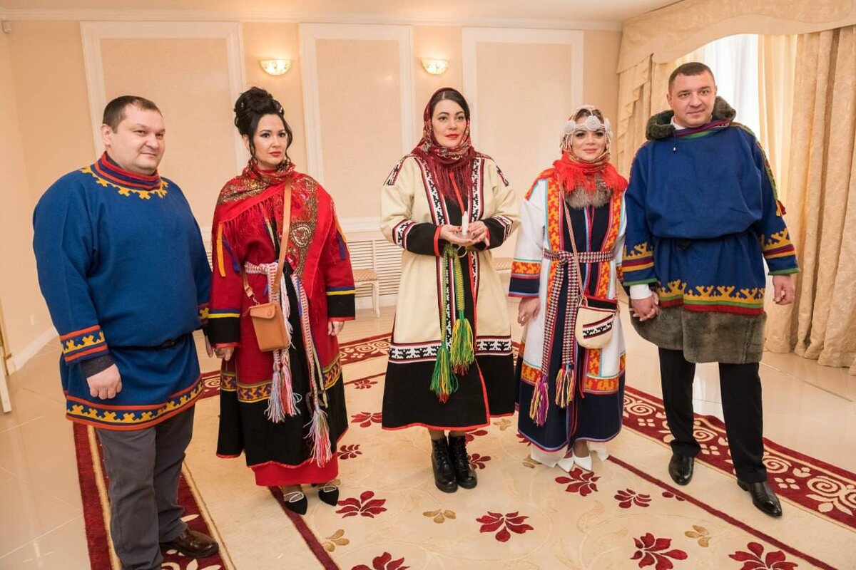 👰♀️Свадьбу с национальным колоритом отпраздновали в Красноярском крае В Дудинке, в день бракосочетания Александр и Ирина решили разнообразить свой торжественный день национальными костюмами и погрузились в атмосферу древних обрядов этнической свадьбы. Там были и бубны, и прикурили трубку из бивня мамонта, и забивали оленя (символически). Жених подарил своей будущей супруге три норковые шубы. Завершилось торжество танцем Хейро вокруг священного дерева. Фото: Агентство ЗАГС 🤩Новости Сибири | Прислать новость