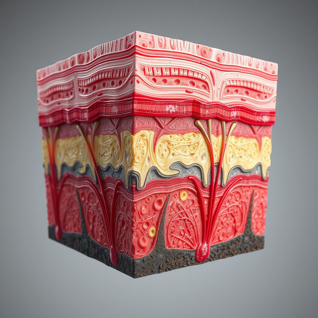 Как устроена кожа человека: удивительный мир под микроскопом Кожа — это не просто внешняя оболочка, которая делает нас красивыми или защищает от холода. Это сложнейший орган, который играет ключевую роль в нашем здоровье и выживании. Представьте себе: площадь кожи взрослого человека составляет около 2 квадратных метров, а её вес достигает 15% от массы тела. Но что скрывается за этой, казалось бы, простой поверхностью? Давайте заглянем глубже и разберёмся, как устроена кожа человека. Кожа состоит из трёх основных слоёв: эпидермиса, дермы и гиподермы (подкожно-жировой клетчатки). Каждый из них выполняет свои уникальные функции. Эпидермис — это верхний слой кожи, который мы видим невооружённым глазом. Он состоит из нескольких подслоёв, где происходят удивительные процессы. Основная задача эпидермиса — создать барьер между внешним миром и нашим организмом. Дерма — это средний слой, где сосредоточены самые важные структуры. Здесь находятся кровеносные сосуды, нервы, потовые и сальные железы