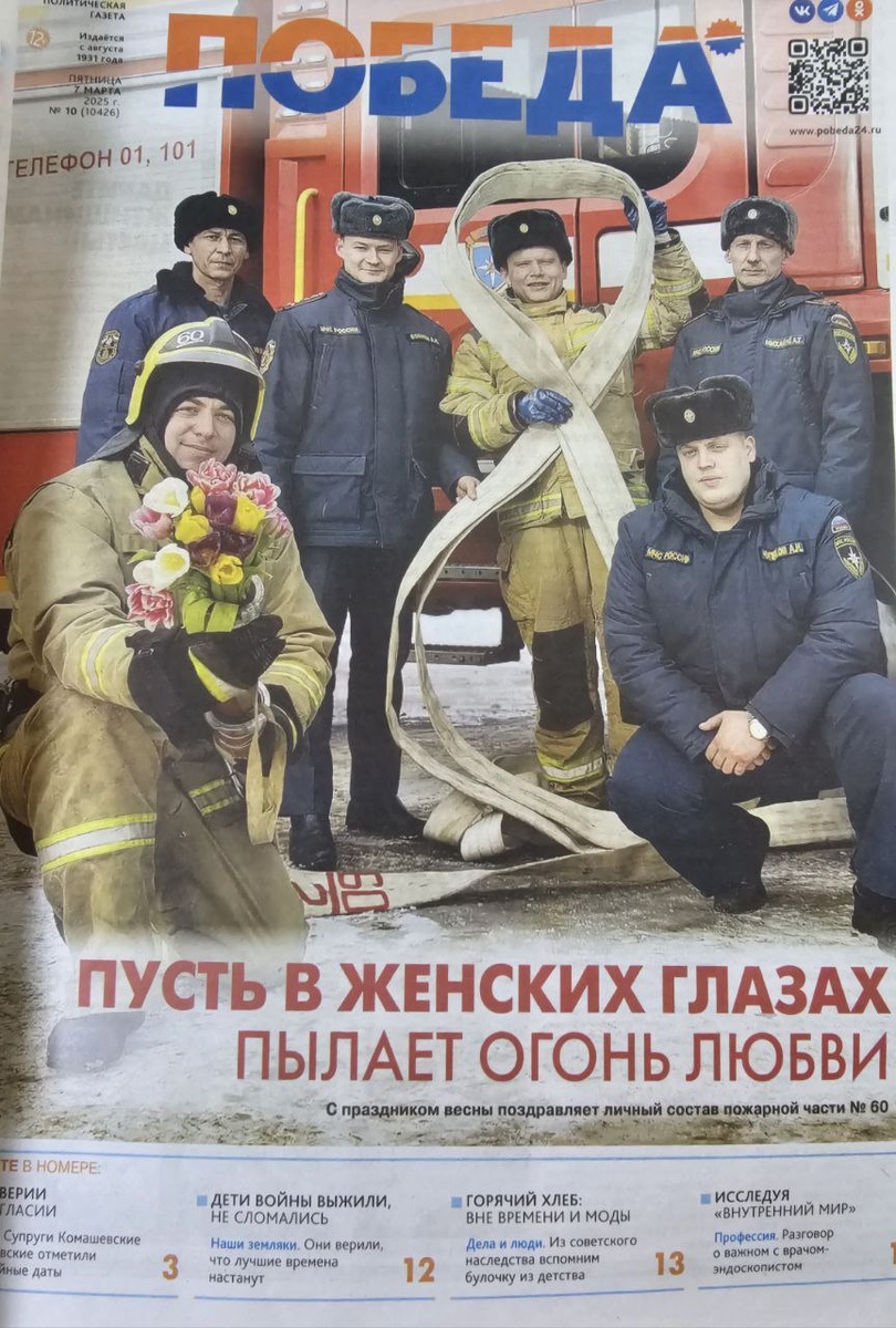 Ежегодно 30 апреля люди героической профессии отмечают День пожарной охраны России Уважаемые сотрудники и ветераны пожарной охраны Нижнеингашского района, примите искренние поздравления с профессиональным праздником! Борьба с опасной огненной стихией всегда считалась делом мужественных и смелых людей. Следуя профессиональному долгу, по первому сигналу опасности вы готовы прийти на помощь, проявляя отвагу, товарищескую взаимовыручку, слаженность, умение быстро принимать решения, от которых зависят жизнь и здоровье людей. В этот праздничный день мы благодарим всех, кто сегодня стоит на страже пожарной безопасности, за каждодневный напряжённый труд, высокий профессионализм и оперативность. Самых тёплых слов признательности заслуживают ветераны, которые стояли у истоков формирования и укрепления прочных традиций службы и пожарного братства. Ваши мужественные лица украшали и продолжают украшать первые полосы нашего издания газеты «Победа». Желаем вам здоровья, благополучия, сухих рука