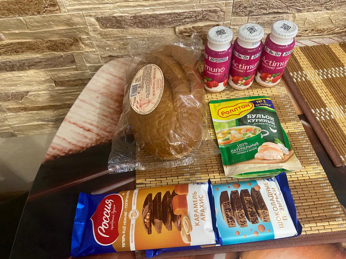 Сегодня купила: Актимуно – 3 штуки, шоколад – 2 штуки, хлеб и Роллтон.