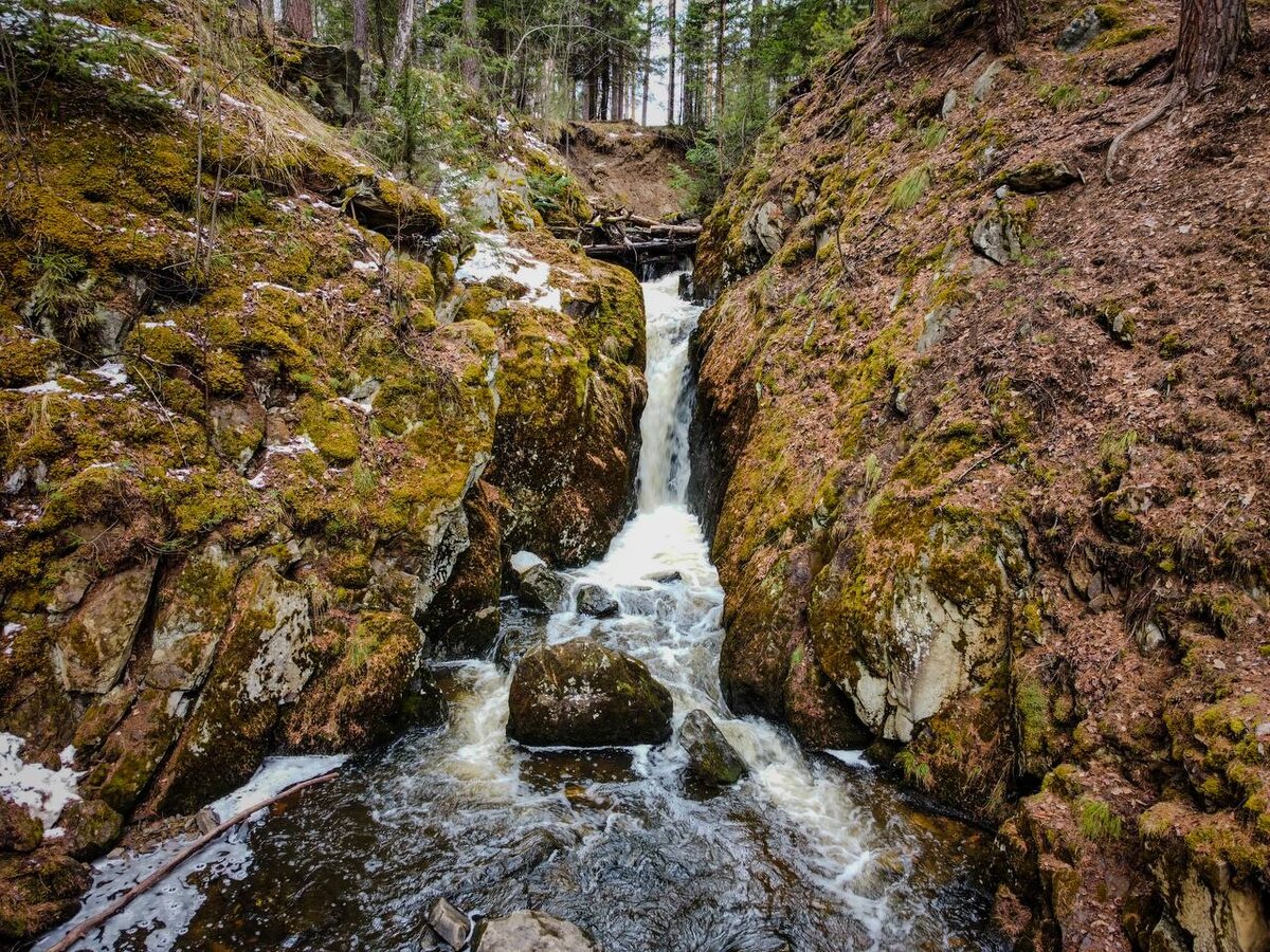 Каменные губы Приблизительно в двухстах метрах ниже плотины на реке Глубокой, находится живописный водопад. Благодаря причудливой форме окружающих его скал, он получил название «Каменные губы», хотя местные жители чаще называют его просто «Водопад». Высота этого природного каскада достигает трёх метров, а его мощность напрямую зависит от работы шлюзов плотины. Спуститься к подножию водопада удобнее всего по деревянной лестнице, расположенной на правом берегу реки. А чтобы посмотреть на водопад с высоты, нужно пройти по левому берегу. Там же есть поляны, где можно расположиться на перекус или вовсе стать с палаткой. В прошлом это место было не только живописным, но и значимым. Когда-то здесь стоял сторожевой домик и «господский дом», где владелец местного завода, Д. П. Соломирский, проводил по несколько недель, наслаждаясь уединением и красотой окружающей природы. #Свердловскаяобласть #Водопад 📍Координаты: 56.372490, 60.103485 Нефордовые дебри 👣 | Подписаться