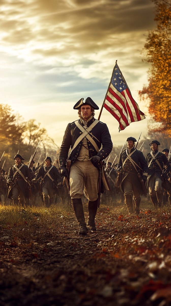 Создано на основе запроса: Benedict Arnold leading American troops to victory at the Battle of Saratoga, Revolutionary War era, dramatic battlefield, waving American flags, British soldiers retreating, heroic pose, intense sky, autumn trees in the distance, 18th-century uniforms, photorealistic, cinematic lighting, epic mood, --- Автоперевод: Benedict Arnold leading American troops to victory at the Battle of Saratoga, Revolutionary War era, dramatic battlefield, waving American flags, British soldiers retreating, heroic pose, intense sky, autumn trees in the distance, 18th-century uniforms, photorealistic, cinematic lighting, epic mood, Что скажешь? 🤔 https://dzen.ru/id/65c0c65c86e4f837c27b24d7 #ИИ #AI #нейросеть #midjourney #art