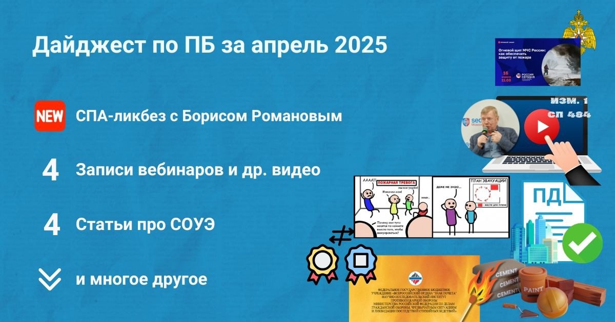 🔥 Подборка материалов за апрель 2025 Собрали для вас дайджест самых интересных публикаций по пожарной безопасности за апрель 2025 (https://clck.ru/3LkYgL) ❗Вы могли пропустить: → Информационное письмо МЧС России № ИВ-19-4-710 по вопросам обучения мерам пожарной безопасности (https://clck.ru/3LkYvb) → Бочугов М.: Управление эвакуацией людей при пожаре (https://clck.ru/3LkZ4w) → СПА-ликбез с Борисом Романовым. Можно ли ИПР выделять в отдельные ЗКПС? (https://clck.ru/3LkYuQ) → и многие другие новости (https://clck.ru/3LkYgL) 💬 Пересылайте дайджест коллегам, чтобы больше специалистов смогли ознакомиться с новостями отрасли!