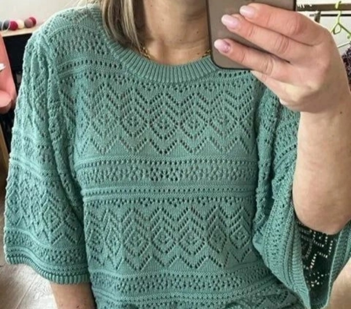 Любите ли вы комбинировать узоры? То есть сочетать в одном изделии разные узоры. Я применяю такой способ и ,правда не всегда , изделие выглядит очень красиво и оригинально. На фото такая модель. Красиво , интересно. Но в чем сложность такого вязания ? Не в самих узорах. Если предоставлена схема можно спокойно разобраться и связать. Сложность в вывязывании круглой проймы горловины и рукава. А также при вязании скоса плеча и головки рукава. Опытные вязальщицы всё свяжут а как поступить начинающим? Хочется же такую красоту. Мои мысли такие: Вязать более свободную вещь , не приталенную. --- // ---- Сделать прямую пройму рукава , не нужно будет заморачиваться убавлением петель в узоре. ----- // ----- Скос плеча связать укороченные ряды просто лицевой или изнаночной гладью.Ничего страшного если будет небольшой клинышек просто без узора. Без скоса плеча изделие сидеть на теле будет плохо. ----- // ----- Головку /она вверху /рукава тоже св