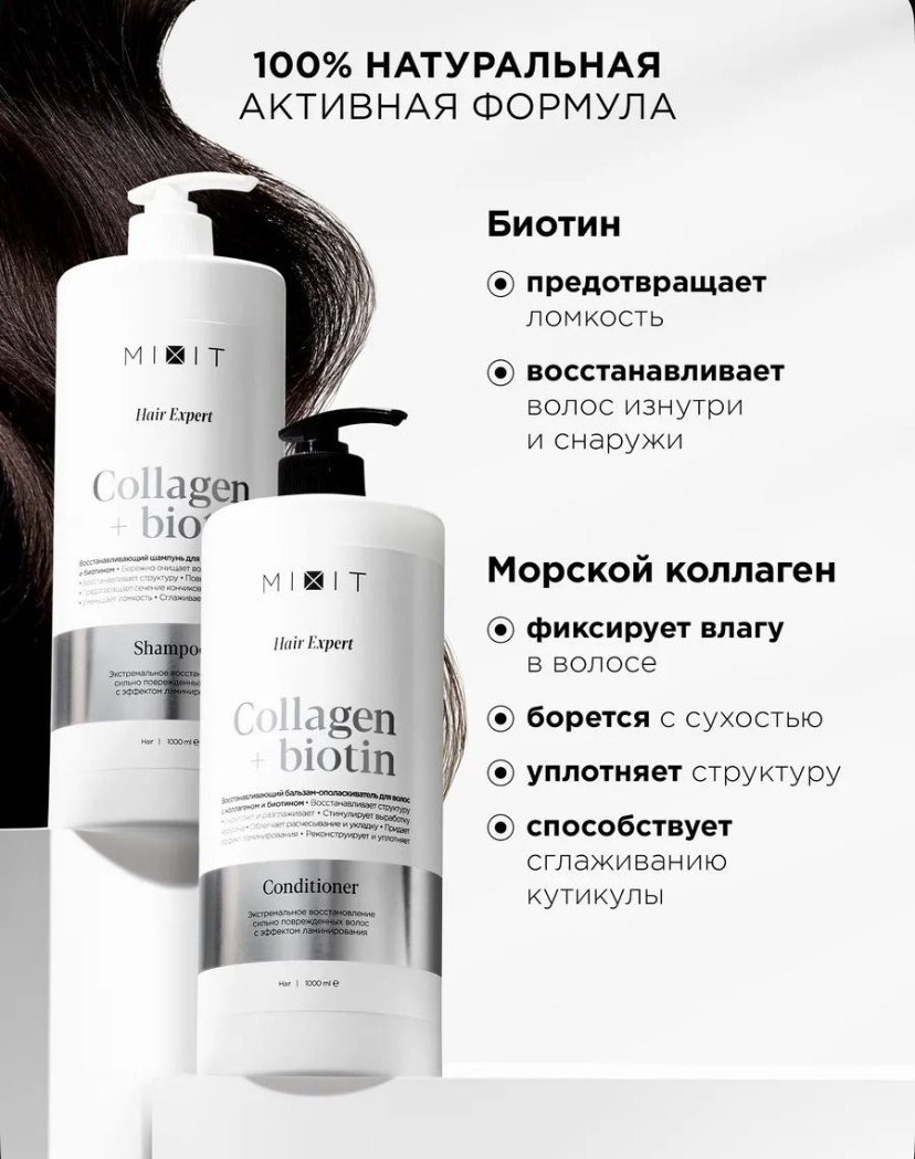 Шампунь MIXIT Collagen & Biotin звучит как мечта: «тотальное восстановление», «эффект салонного ухода», «идеально для сухих и окрашенных волос», «натуральная активная формула». Но давай по-честному: ты веришь этим обещаниям или всё-таки читаешь состав? Вот он — и сейчас ты поймёшь, почему не всё так красиво, как на этикетке. Биотин и коллаген. Звучит дорого и ухаживающе. Но биотин (витамин B7) в шампуне не работает так, как в рекламе — он практически не проникает через кожу головы. Это доказано. Его эффективность при наружном применении — маркетинговый миф. Морской коллаген — по сути, белок, который просто обволакивает волосы. Но он не «восстанавливает изнутри». Коллаген — крупная молекула, она не проходит сквозь кутикулу волоса. Уже не новость: это агрессивное ПАВ, которое вымывает не только грязь, но и защитный липидный слой. Сухость, зуд, раздражение и даже выпадение волос — частые последствия. Для окрашенных, сухих и повреждённых волос — это как соль на рану. Почему шампунь, яко