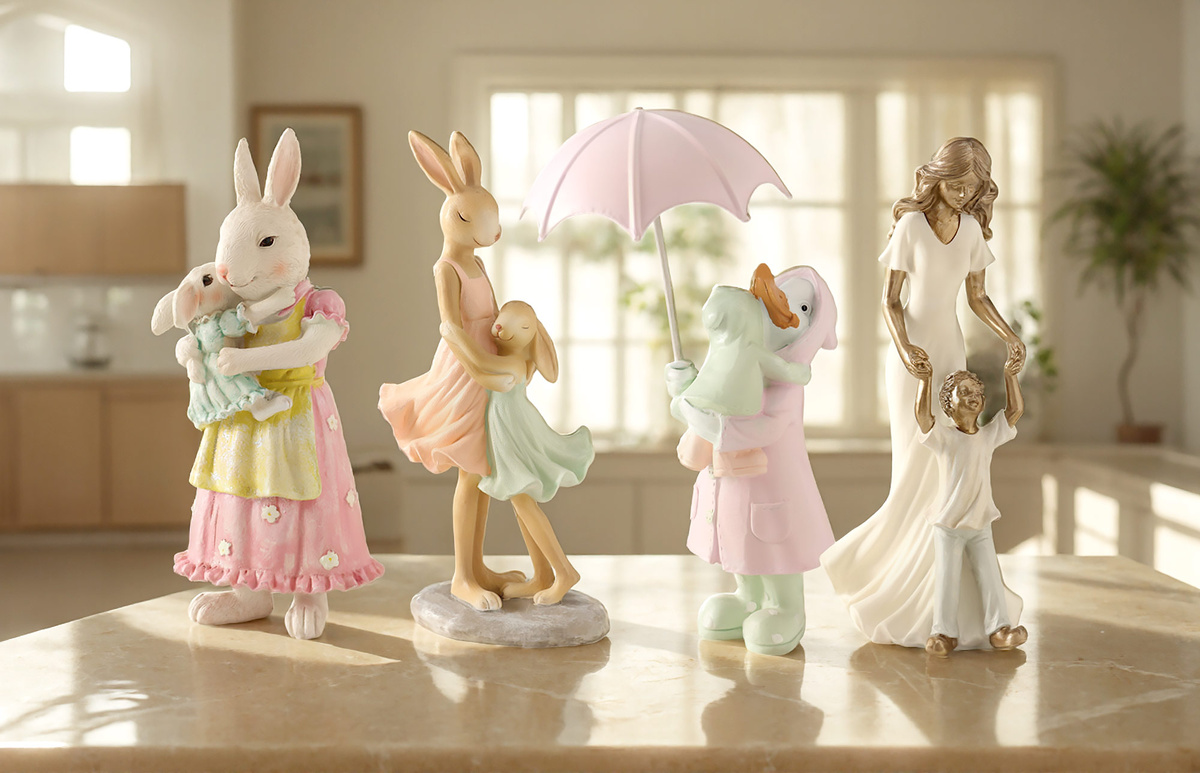 Перед расстановкой продумайте композицию. Можно выбрать фигурки одной высоты — это создаст ощущение порядка. Или сыграть на контрасте, сочетая крупные и миниатюрные предметы для динамики. Другой вариант — объединить статуэтки из одного материала: дерева, металла, керамики или стекла. Это придаст композиции законченность.