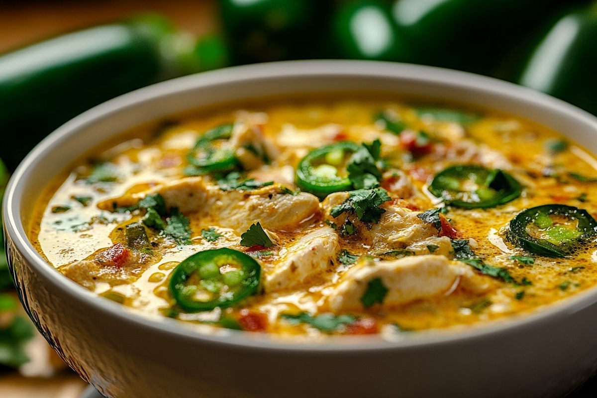 Создано на основе запроса: Title: Spicy Jalapeno Popper Chicken Soup | STYLE: Close-up Shot right view | EMOTION: realistic as possible
