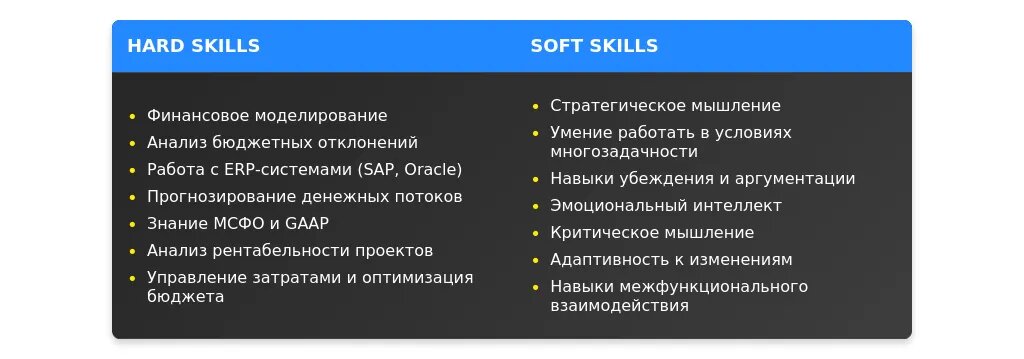 - Коммуникабельность: взаимодействие с отделами для согласования бюджетов.
