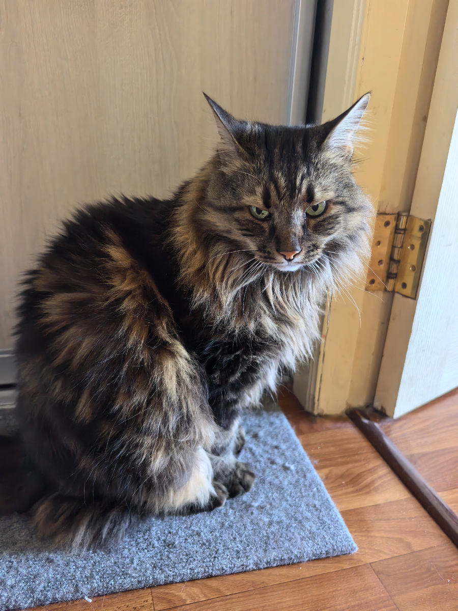 Всем привет! С вами Кузя Кусалочкин и сегодня я буду рассказывать про плохих людишек, а ещё расскажу, чему я был удивлён. Утро началось стандартно: мы с хозяйкой проснулись, и я получил свой паштетик. Проводил хозяина на работу, посидел на балконе и лёг спать. Спал себе спокойно на своём диванчике. И тут включили сирену! Давно у нас сирены не выли (если кто не знал — я в Севастополе живу). Плохие людишки опять надумали какие-то ракеты пустить. Хозяйка сказала, что на Пасху тихо было, а тут другой праздник, и эти нехорошие людишки решили так нас поздравить. Я проснулся и был очень недоволен происходящим: Кстати, хозяйка мне зимой заказывала такую когтеточку: Я решил, что это неплохая лежаночка. Но и пытаюсь использовать иногда по прямому назначению. Лежу, продумываю план, что делать с плохими людишками: Может, кусь? Или кусочки пооткусывать, как тут: Хозяйка подождала, пока всё утихнет, и уехала на выставку. Пока ехала, то сирены включили второй раз. К счастью, выключили их довольно б