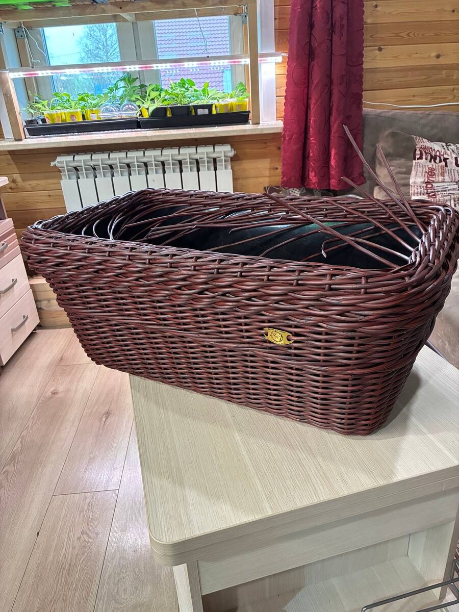 В-третьих, выбор ротанга. Тут удача оказалась на моей стороне. Заказчику нужен был определенный цвет — вишня с черным. Этот ротанг производится в Гатчине. В целом, я не люблю этот ротанг. Он гладкий и скользкий, на круглых кашпо не прижимается, а выскакивает. А вот для прямоугольных емкостей он оказался идеален. Возможно, еще хорош будет Ростовский 5,5 мм. Тарко (Бронницы) или Карат (Саранск) будет сложнее аккуратно уложить. Если только брать более узкий профиль 5 и 5,5 мм. Гатчина же хорошо легла 6 мм.