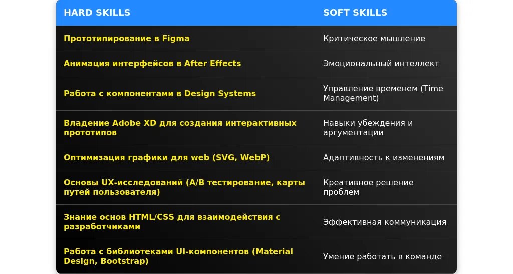 На что делать акцент: навыки работы с инструментами (Figma, Adobe XD), понимание основ дизайна, мотивация.