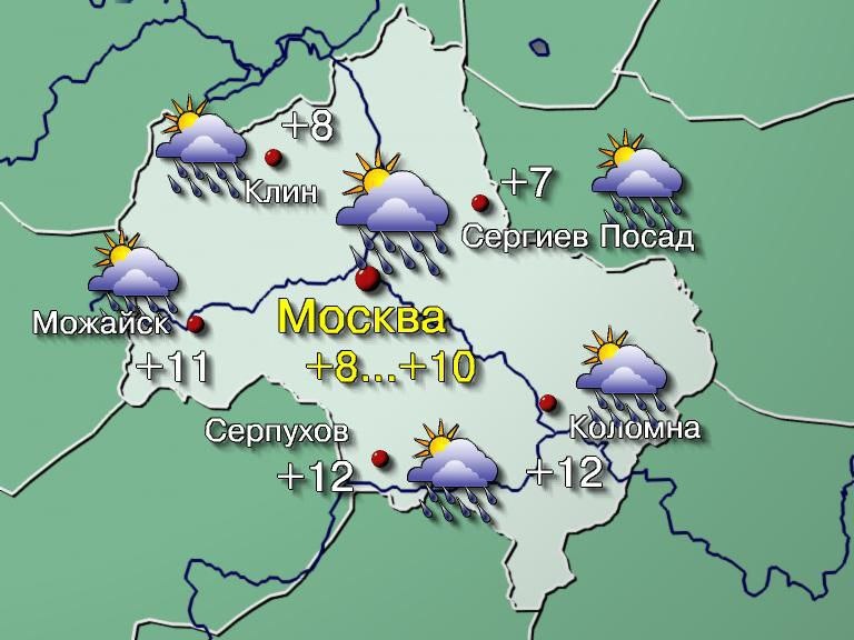 🌦Москва: местами пройдут кратковременные дожди