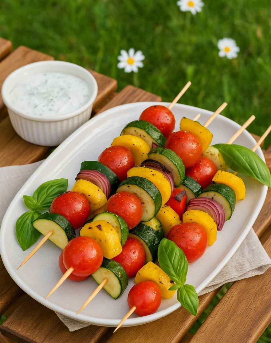 Овощной шашлык 🥦 Цветной, хрустящий и ароматный — этот шашлык украсит любой стол и порадует не только вегетарианцев! Ингредиенты: - Болгарский перец (красный, жёлтый, зелёный) - Кабачок или цукини - Баклажан - Шампиньоны - Помидоры черри - Оливковое масло — 2 ст. л. - Сухие травы (орегано, тимьян, базилик) - Соль, чёрный перец Приготовление: 1. Нарежьте овощи крупными кусочками. 2. Смешайте масло со специями и травами. 3. Обваляйте овощи в маринаде и оставьте на 15–20 минут. 4. Нанижите на шпажки. 5. Обжарьте на гриле или в духовке до мягкости и лёгкой золотистой корочки (примерно 10–12 минут). Фишка: можно подавать как гарнир к мясу или как самостоятельное блюдо — вкусно в любом варианте.