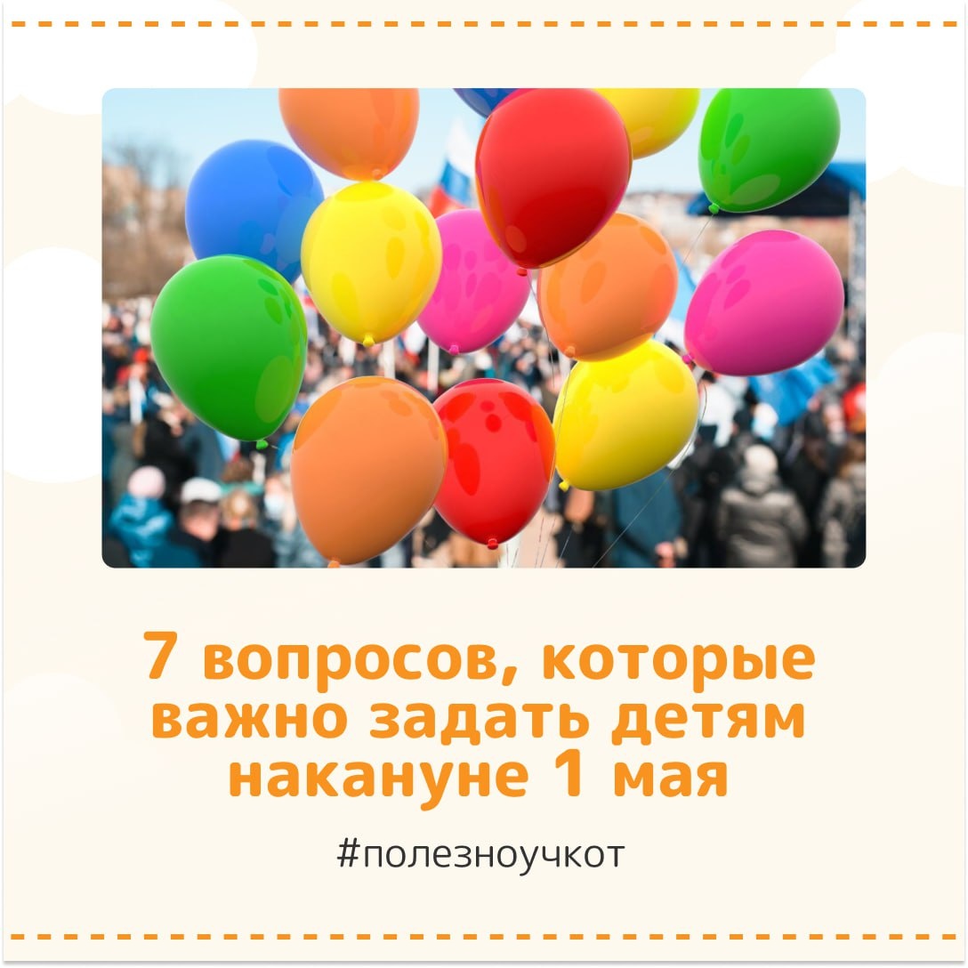 Как объяснить ребенку, что за праздник 1 мая и какие можно завести традиции. 🇷🇺Первое мая – это возможность рассказать детям о ценности труда, об идеях справедливости, о любви и поддержке друг друга. Весной, когда природа просыпается, люди выходят на улицы, чтобы отметить день, посвящённый работе и рабочим. Это день, когда мы благодарим всех, кто трудится, чтобы сделать наш мир лучше. Напишем 7 вариантов вопросов, которые важно задать детям накануне праздника, чтобы обсудить вопрос труда и призвания: 🔻Что ты хочешь делать, когда вырастешь? Какие отрасли и профессии тебе интересны? 🔻Как ты думаешь какие качества тебе понадобятся, чтобы успешно справляться со своими задачами? 🔻Какие качества ты ценишь в своих учителях или взрослых, с которыми ты общаешься? 🔻Чему ты научился, выполняя свои обязанности по дому или в школе? 🔻Как думаешь, чем может быть полезна определенная профессия для окружающих? 🔻Что тебе интересно узнать о работе или деятельности кого-то из наших знакомых? ?