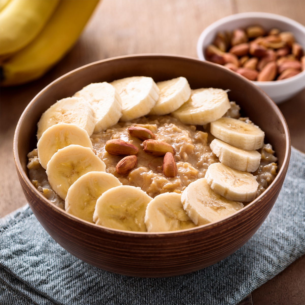 Свари овсянку на молоке, добавь банан и ложку пасты.