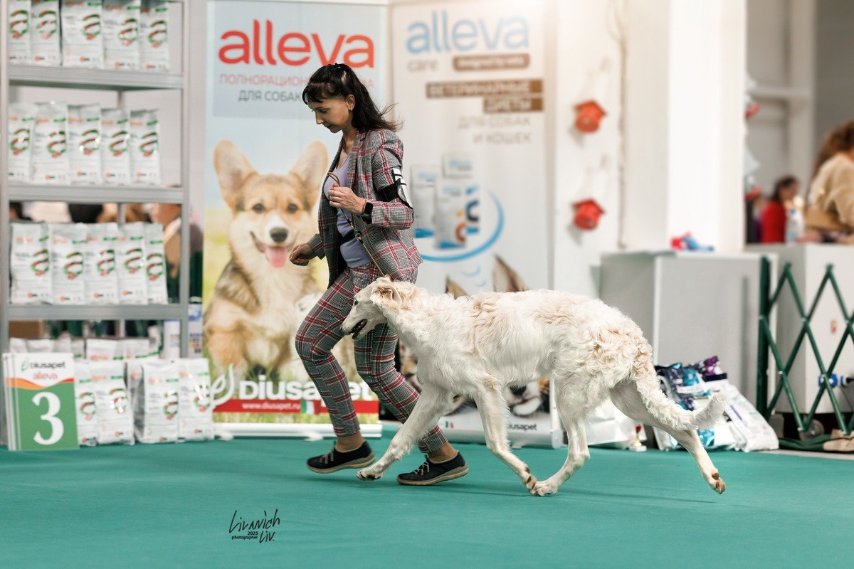 Москва Крокус Экспо 27.04.2025 МОНОПОРОДНАЯ ВЫСТАВКА РАНГА КЧК КАЖДОМ КЛАССЕ Эксперт Miranda Sausedo Juan Fonezel Jacor Snejniy Rassvet ( скоро 6 месяцев ) класс беби . Лучший Беби выставки ( очень перспективный ) , ребенок старался ! Первый раз в городе , первый раз на ринговке , первый раз в большом шумном зале !