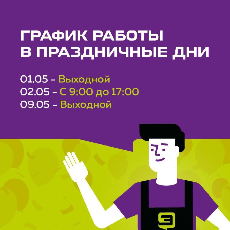 Уважаемые клиенты! С наступающими майскими праздниками 👏🎉 Обратите внимание на график работы магазинов: 01.05 - выходной 02.05 - с 9:00 до 17:00 09.05 - выходной 😎🤝