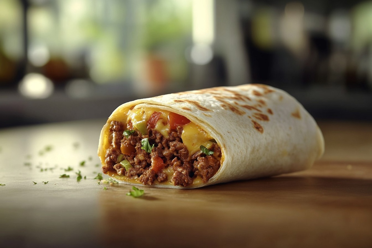 Создано на основе запроса: Title: Beefy Nacho Cheese Wrap | STYLE: Close-up Shot right view | EMOTION: realistic as possible | SCENE