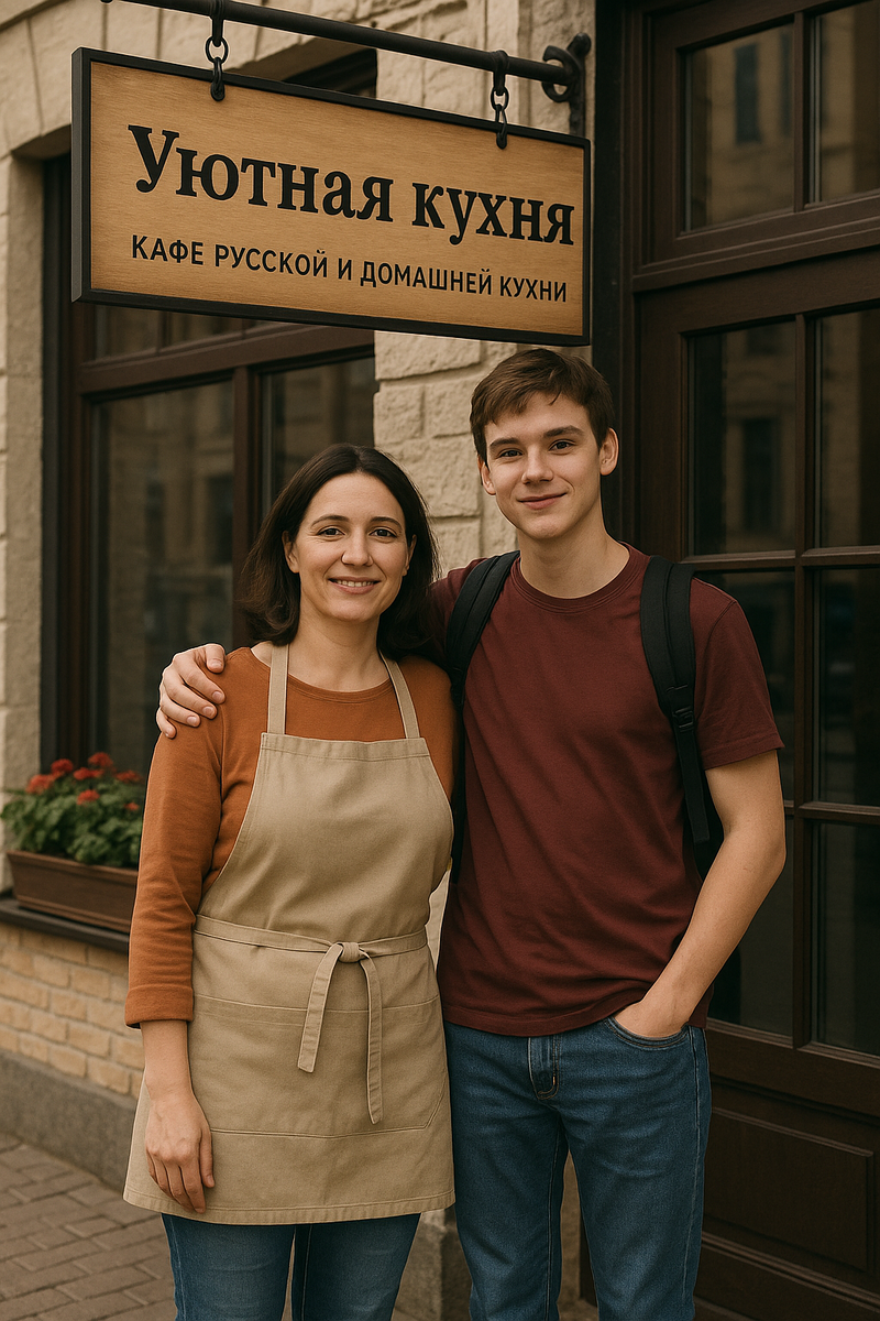 Утром Алия шла по брусчатой улице, держа в руке тёплый стаканчик капучино. Над дверью маленького, но уютного заведения висела аккуратная вывеска: “Уютная кухня” — кафе русской и домашней кухни. Её кафе.