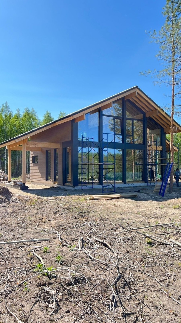 • Максимум естественного света: панорамные окна обеспечивают простор и ощущение свободы, а деревянные детали подчёркивают теплоту и комфорт.
