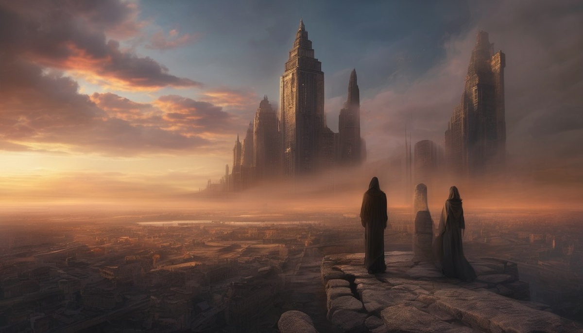 Город вокруг начал меняться: стены стали зеркалами, отражающими не их образы, а их страхи. Из одного зеркала вышел человек в чёрном плаще, лицо его было пустым, но глаза — живыми.