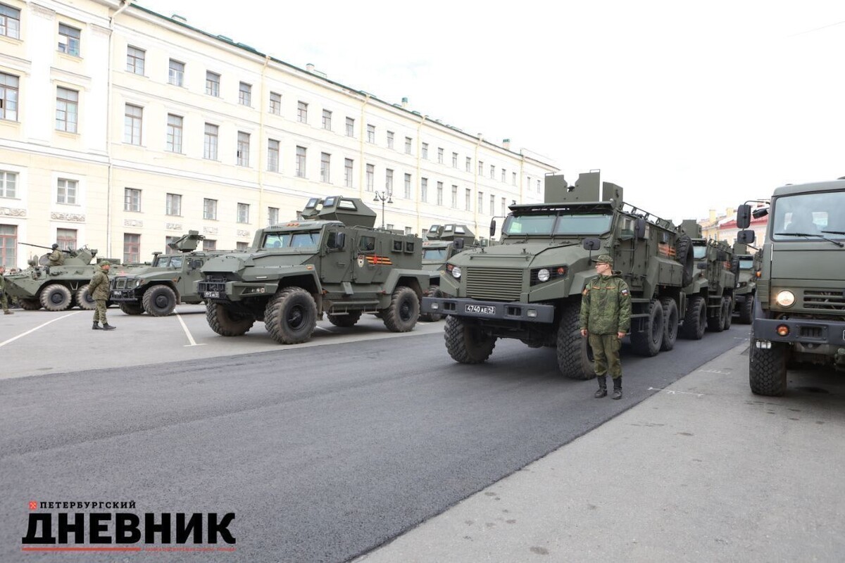 Сегодня, 30 апреля, на Дворцовой площади состоится очередная репетиция парада Победы. Как сообщает фотокорреспондент «Петербургского дневника», боевая техника уже подошла к Дворцовой площади и начала выстраиваться для участия в репетиции.