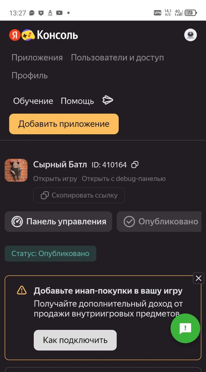 Всем гайс у меня для вас хорошие новости игра опубликована
