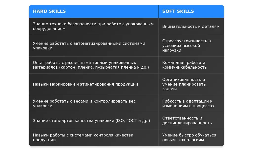 Пример 4: "Опыт работы с упаковочным оборудованием" — обязательное требование для вакансии, связанной с автоматизированной упаковкой.
