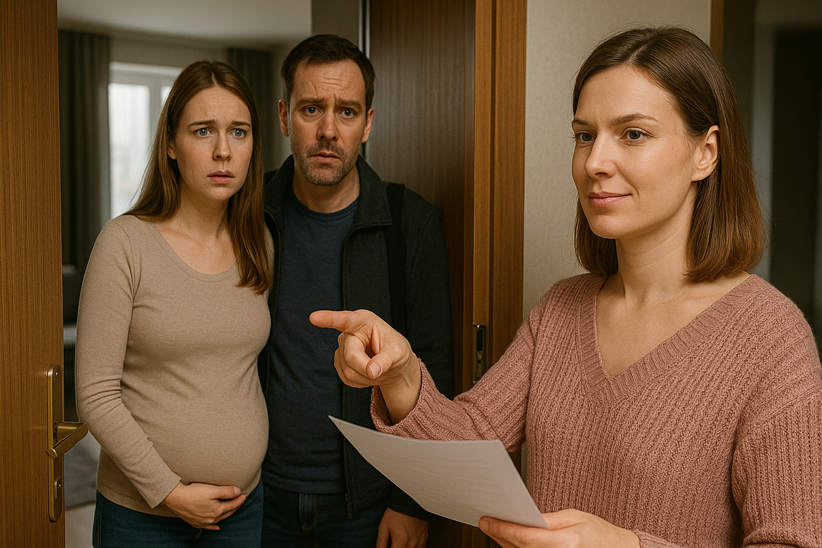 На диване сидел Андрей. Рядом с ним — молодая девушка, явно на шестом или седьмом месяце беременности. Она гладила живот и, судя по выражению лица, чувствовала себя как дома.