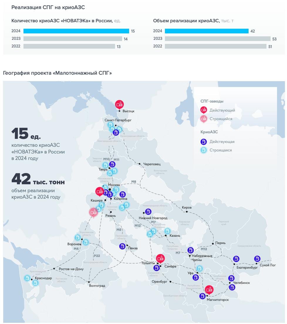 Спрос на СПГ в качестве моторного топлива в России снижается. "Новатэк" отчитался о продаже в 2024 году через свои сети заправки 42 тыс. тонн сжиженного природного газа, что на 21% меньше в годовом выражении. В компании отметили, что снижение объемов реализации СПГ на внутреннем рынке в качестве газомоторного топлива в основном обусловлено ограниченным спросом на фоне сдержанного распространения техники, работающей на СПГ, ввиду ее более высокой стоимости. Да, компания отметила снижение выбросов парниковых газов при производстве СПГ сокращены на 7% до 0,224 тонны СО₂- эквивалента на тонну СПГ.