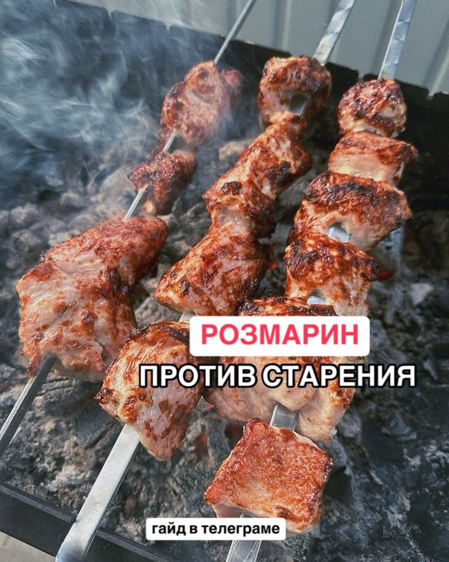 Любите шашлыки? Я тоже. Но вот что стоит знать, если хочется кайфовать от отдыха, а не превращаться в «старенькую подкопченную шаурму». Когда вы обжариваете мясо до красивой румяной корочки — в нём образуются конечные продукты гликации. Они незаметно старят кожу, убивают энергию и бьют по сосудам. Тот самый случай, когда вроде отдыхали, а в итоге: — Лицо помятое. — Кольца на пальцах не налезают. — Желание работать = ноль. И да, можно после выходных пить смузи и сидеть на салатиках, НО! Есть способ защититься ещё на старте — прямо у мангала. РОЗМАРИН. Веточка этого волшебника в маринаде или на углях — и карнозоловая кислота делает свою работу: ✅блокирует вредные процессы, ✅поддерживает печень, ✅защищает клетки, ✅замедляет старение. Просто добавь. И мясо вкуснее, и твоё лицо скажет спасибо. Кстати, я собрала гайд: “Как приготовить шашлык, который не убьет ваше пищеварение”. Рецепты, лайфхаки, секреты маринадов. Выложила его в Телеграм — ссылка в шапке профиля.