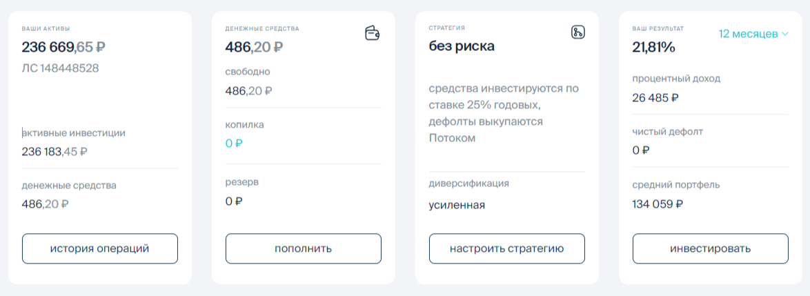 Как зашел на эту платформу - выбрал стратегию "Без риска" и ничего не менял. Почти год на платформе. Зашел в мае 2024.