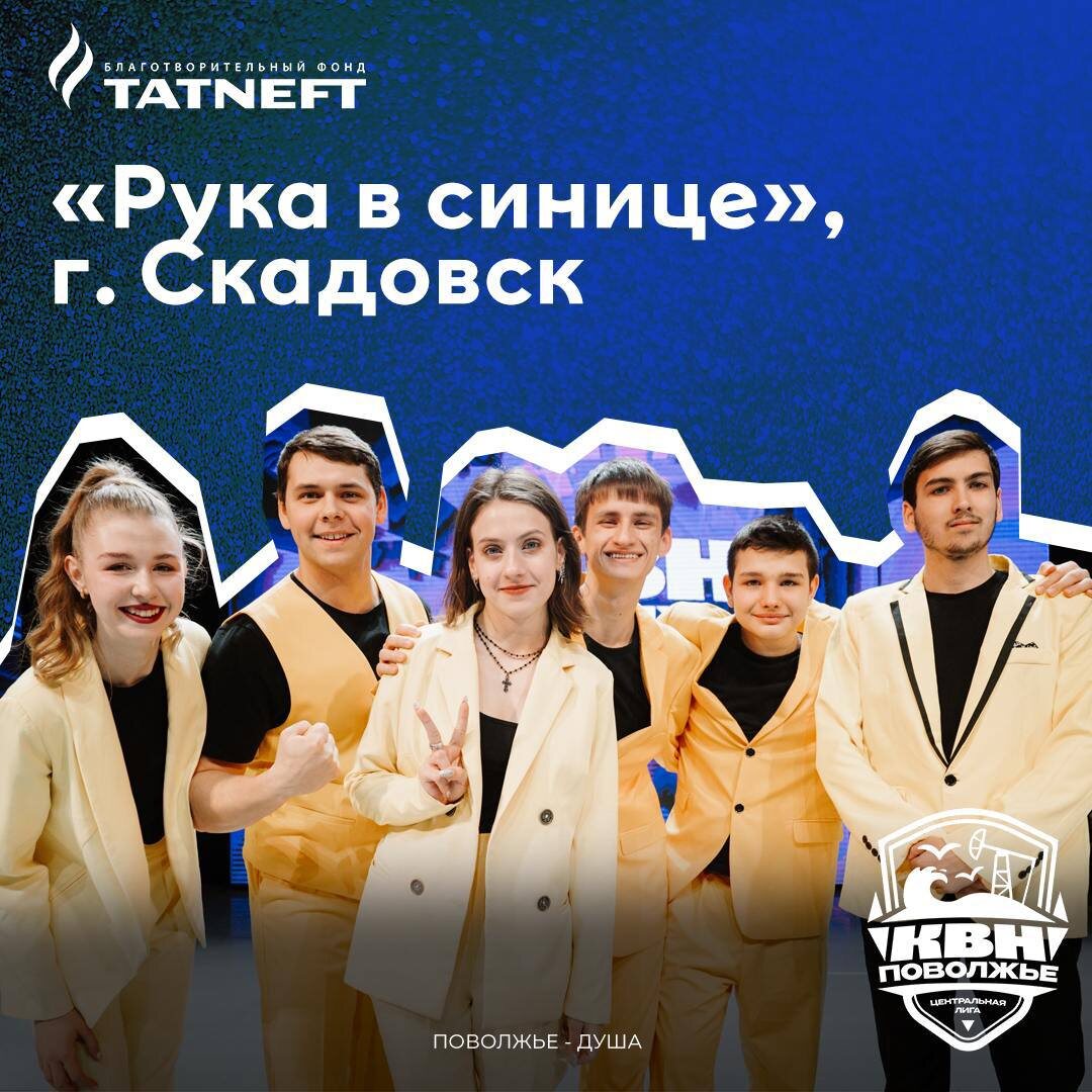 Завершаем знакомство с командами-участниками сезона 2025 центральной лиги «Поволжье»🌊 И завершит знакомство команда «Рука в синице», г. Скадовск, Херсонская область 🤍 Ребята сыграют в первом четвертьфинале, который состоится 14 мая! Билеты уже можно приобрести на сайте Bileton:https://bileton.ru/events/1-4-finala-centralnoy-ligi-ms-kvn-povolzhe-197311