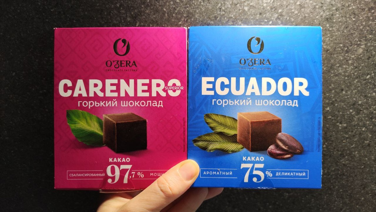 Шоколад из России 🇷🇺 Попробовала два шоколада от фирмы Ozera, о которой давно слышала. Обожаю, когда шоколадки порционные. В упаковке 12 штук по 7,5 грамм, каждая в индивидуальной упаковке 🐾 У меня два вкуса: мощный и деликатный. Названия четко передают вкус. Деликатный это горький шоколад, который по вкусу ближе к темному. Терпкий, с небольшой сладостью. А вот мощный, прям мощный😁 Пробовала впервые 97,7% какао, по вкусу прям как будто одни какао бобы. Кубики кажутся твёрдыми и суховатыми, практически не тают в руке, наверное из-за высокого содержания какао. Под кофеек и просто так Деликатный заходит на ура, а вот мощный для меня слишком мощный😁 Мощному шоколаду я нашла применение в кулинарии, где он вписался просто идеально. Из него классно готовить какао напиток (просто растворяете его в теплом молоке) и бисквит. Я готовила бисквит по рецепту из мультиварки, там используется достаточно много сахара и мне обычно очень сладко. Так вот мощный шоколад пригасил сладость и добавил