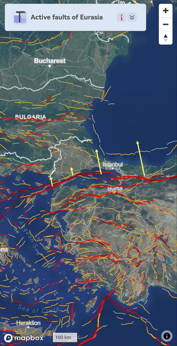 Сегодня утром снова замечен облачный индикатор через Мраморное море в Черное (фото 2-4), а после его распада туман принял волнообразную форму по контурам границы Анатолийской плиты. Протяженность ОСТИ по-прежнему находится в интервале М6.2-6.5 P.S. ну и тем, кто еще не в курсе, добавлю. ОСТИ - это не гарантированный предвестник именно крупного землетрясения. Это оценка его максимально возможной магнитуды. На деле же ситуация может закончиться одним-несколькими более слабыми событиями (М4-5) и таких случаев достаточно. Т.Е. не всегда одни и те же картины дают одни и те же сейсмические результаты. === This morning, a cloud indicator was seen again through the Marmara Sea into the Black Sea (photos 2-4), and after its disintegration, the fog took on an undulating shape along the contours of the Anatolian Plate boundary. The length of the CSTIs is still in the range of M6.2-6.5