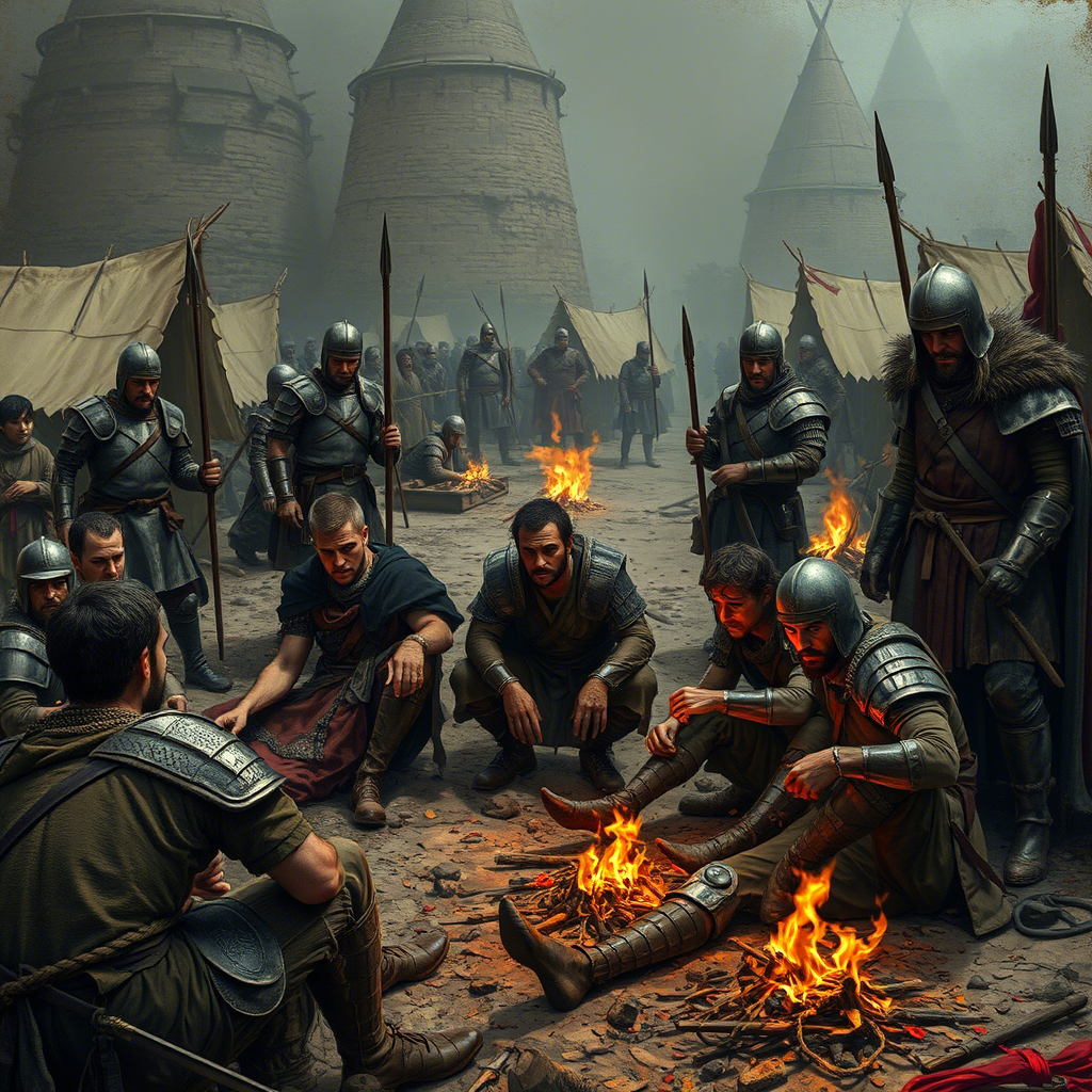По негласной команде мы начали битву. Длинный меч был неудобен в этом сражении. У убитых я забрал клинки. Ох, началось. Мы одного за одним заманивали в ловушку и убивали. Прошло не менее получаса. Они перестали наступать. "Перегруппироваться", - шёпотом передавали друг другу. Мы не знали, чего ожидать, поэтому решили идти дальше вглубь леса. Пока мы шли, туман постепенно рассеивался, видимость улучшалась. Выйдя полностью из тумана, мы увидели, что нас уже ожидал противник. Наверное, пока мы сражались, они успели взять нас в кольцо. Вражеский командир заговорил громким голосом: "Сдавайтесь! Вы окружены, вам некуда деваться. Если сдадитесь, я продам вас в качестве рабов. Если повезёт - в хорошие бордели." Мне стало смешно: "Если сдадимся - в бордели." Наш командир спросил: "А если не сдадимся?" Ответ был очевиден - на нас направили луки с трелами, готовые по приказу начальника отпустить натянутую тетиву. Было интересно, что сейчас думает наш командир. Он сказал: "Сложить оружие." Вс