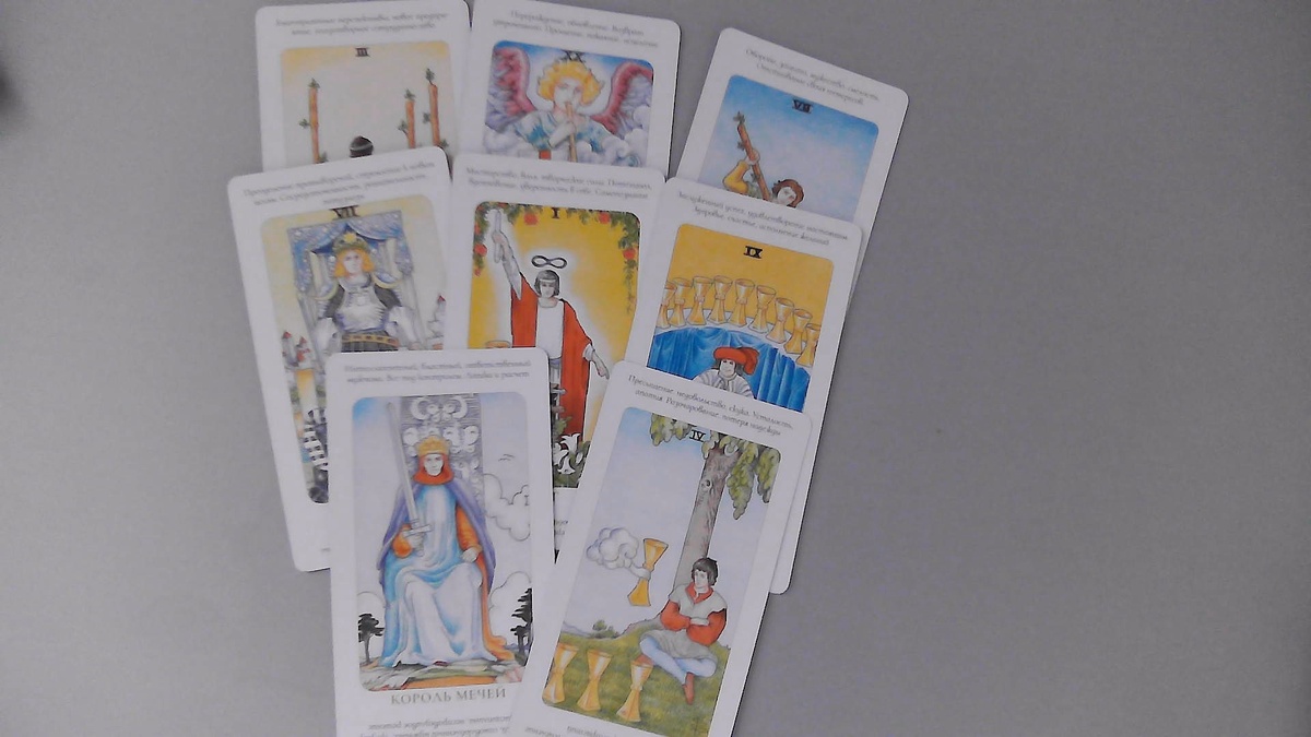 А делает это мужчина, король мечей, у которого , кстати, у самого в жизни полный раскардаш, Страшный Суд делает свое дело, летит ему возмездие и наказание за его дела, он пытается противостоять обстоятельствам, может даже ездить к какому-то магу-специалисту, но все безуспешно. Зато про вас распускать сплетни у него время есть. А сплетни касаются больше вашей профессиональной деятельности, рассказывает, что у вас в работе застой, нет прибыли, заработка и вы в полной растерянности, не знаете, что делать. Еще сплетничает, что вокруг вас много людей, которые активно все делают, чтобы перетянуть на себя ваш успех, приворовывают у вас что-то. Также сплетничает о вашей семье, что у вас нужда, не хватает в семье денег, долги, бесконечные конфликты, скандалы, нет лада и гармонии, и все из-за денег. Здесь мужик "чешет своим языком", находясь, похоже, не в себе.либо у него с головой не очень, либо человек настолько фантазирует и верит в свой мир и во все то, что он делает, что десяточку мечей он
