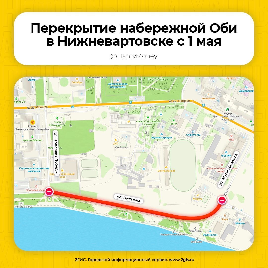 🚧 Перекроют дорогу в районе набережной в Нижневартовске 1 мая