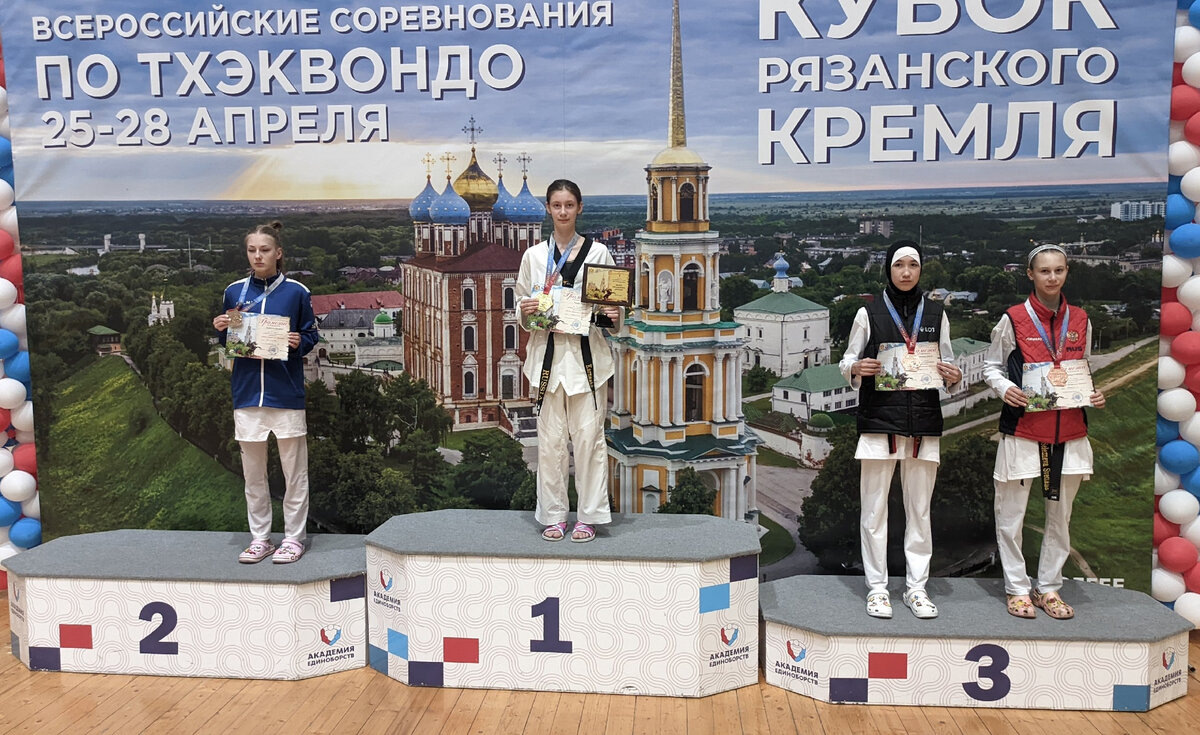 В состязаниях приняли участие более 1300 спортсменов. 25-28 апреля в Рязани проходили всероссийские соревнования по тхэквондо ВТФ «Кубок Рязанского Кремля» среди юниоров и юниорок до 21 года, юниоров и юниорок 15-17 лет, юношей и девушек 12-14 лет, и межрегиональном фестивале среди младших юношей и девушек 2013-2014 г.р. В состязаниях принимали участие 1327 спортсменов из 41 субъекта России Данный турнир является одним из самых крупных в России.на Кубке в составе сборной команды Смоленской области принимала участие учащаяся СГУОР Мария Карнаух. Студентка Смоленского государственного училища олимпийского резерва победила в двух возрастных группах, и во второй раз за две недели выполнила норматив Мастера спорта России по тхэквондо. Мария завоевала золото среди юниоров до 15-17 лет. Также спортсменка взяла первое место до 21 года. Поздравляем!!! Ранее Readovka67 сообщала, как Смоленские каратисты успешно выступили на соревнованиях в Минске.